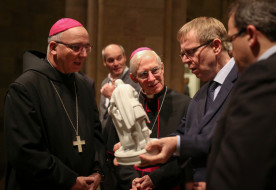 A főapáti köszöntő után az alapítók képviselői átnyújtották a díjat, amely Szent Márton és a koldus porcelánból megformált alakja, Horváth Mihály Munkácsy-díjas iparművész alkotása.