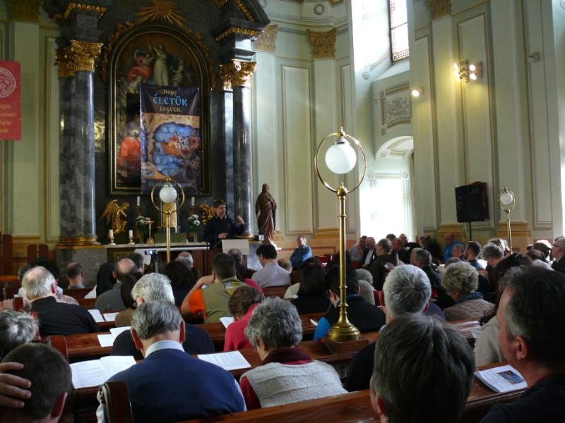 „... hogy életük legyen és bőségben legyen” mottóval a szervezők a szentségi életre irányítják a figyelmet ezekben a napokban. A fiatalok megszólítása, a hivatás témákból kiindulva foglalkoznak a szentségekkel. A keresztségről Keresztségünkből fakadó alaphivatásunk címmel Puskás Attila teológiai tanár beszélt.