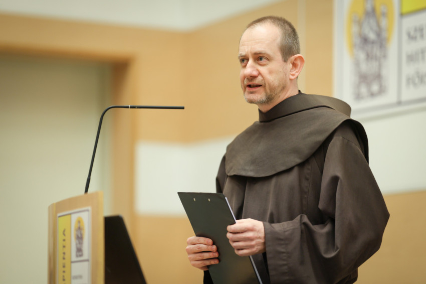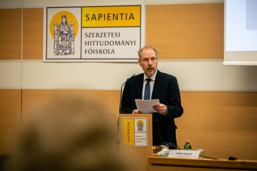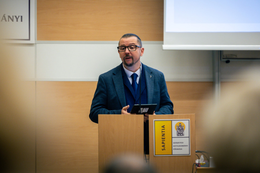 Bagyinszki Ágoston OFM házigazda rektor köszöntőbeszédében hangsúlyozta, közös gondolkodásra, párbeszédre hív ez a konferencia; találkozási teret szeretne létrehozni a Sapientia Főiskola.