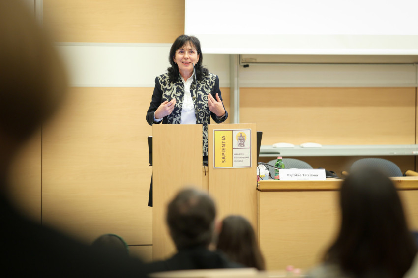Pajtókné Tari Ilona, az EKKE rektora teremtésvédelmi témát mutatott be: hogyan szolgálják a tudományok bolygónk jövőjét, ez hogyan valósul meg a gyakorlatban, például az egri katolikus egyetemen; milyen vállalásokat tettek ennek érdekében, a térségért is felelősséget viselve.
