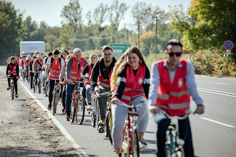 A kerékpárokkal a Rákóczi Szövetség szervezésében fiatalok bicikliztek át a határon szeptember 28-án, pénteken kora délután. Ötven diák szállt fel Beregsurányban az ajándék biciklikre, és innen Zagyva Richárd, a Katolikus Karitász országos igazgatóhelyettese és Klaus Höhn németországi jószolgálati nagykövet vezetésével keltek át a határon. A mintegy tíz kilométer megtétele után a beregszászi római katolikus plébánián adták át a kerékpárok egy részét magyar diákoknak. A többit innen szállítják majd tovább a családokhoz a településen és Gyertyánligetre.
