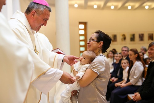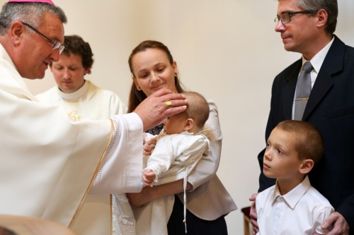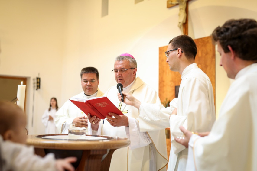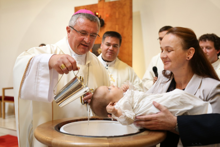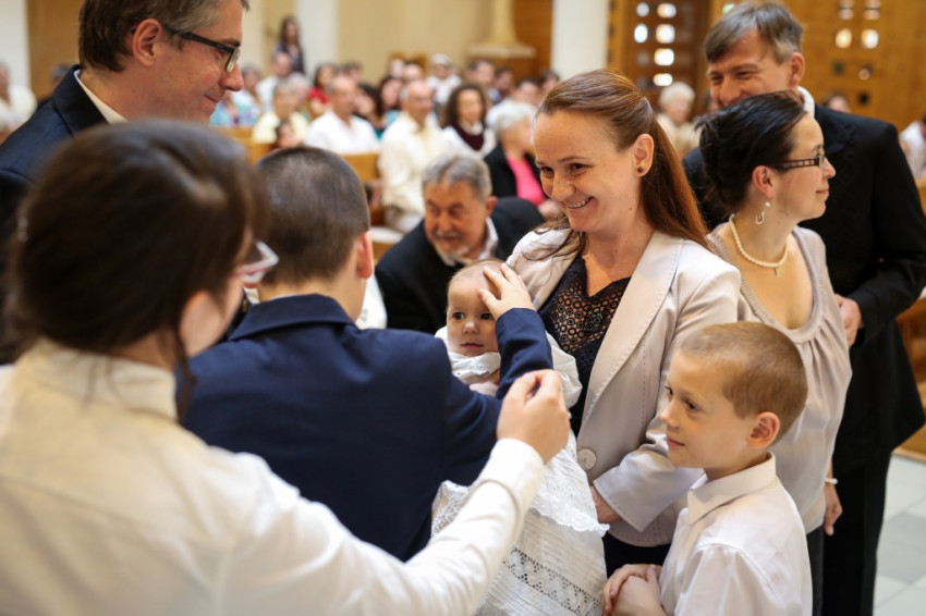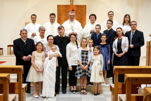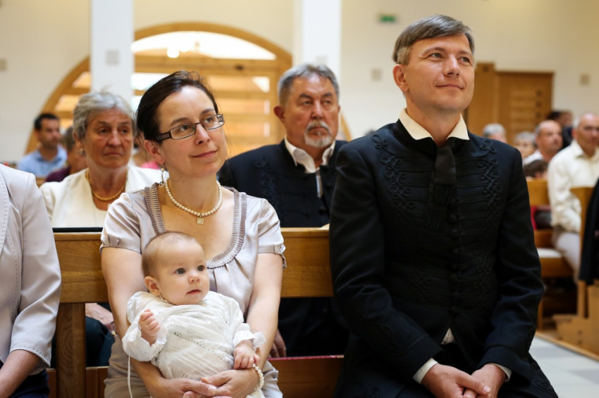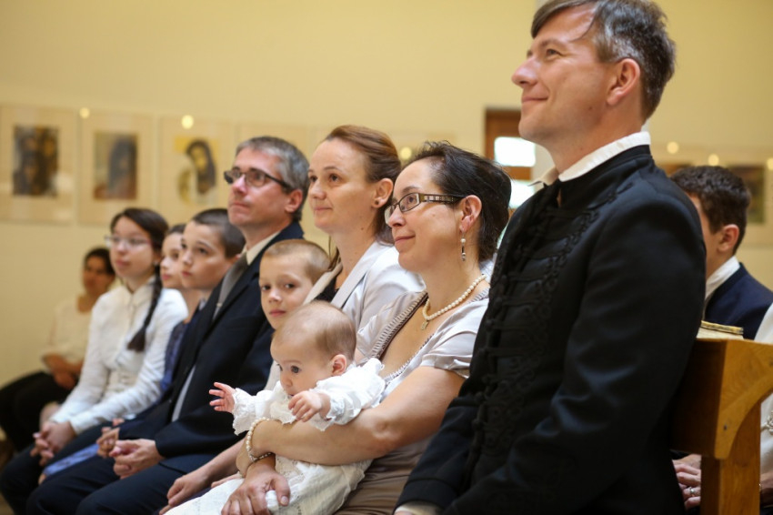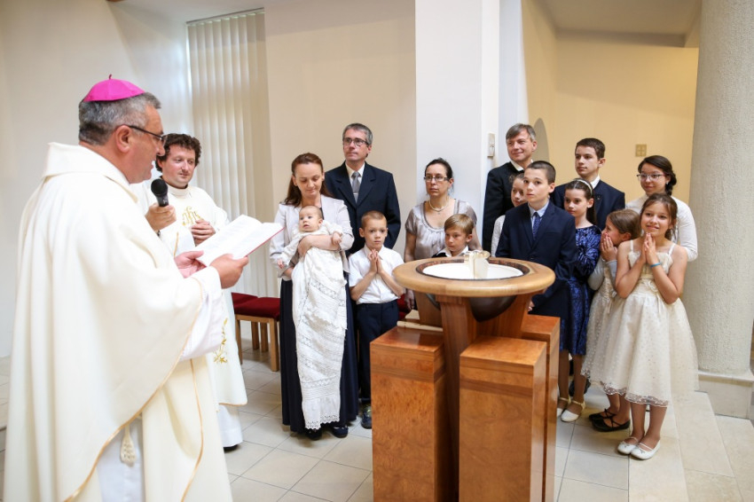 Veres András püspök a családok éve alkalmából felajánlotta, hogy szívesen elmegy megkeresztelni az egyházmegye minden olyan babáját, aki háromgyermekes vagy annál is nagyobb családba érkezik. Így aztán örömmel mondott igent, amikor meghívták, hogy szolgálata által Mária Filoména, a család hatodik gyermeke új, isteni életre szülessen.