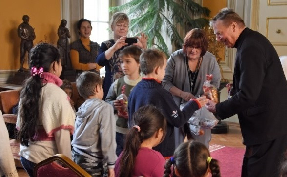 A HandaBanda zenekar jó hangulatú koncertje után Beer Miklós a Szent Miklós-i hagyományhoz híven ajándékcsomagokat adott át a gyerekeknek. Az ünnepség közös énekléssel zárult.