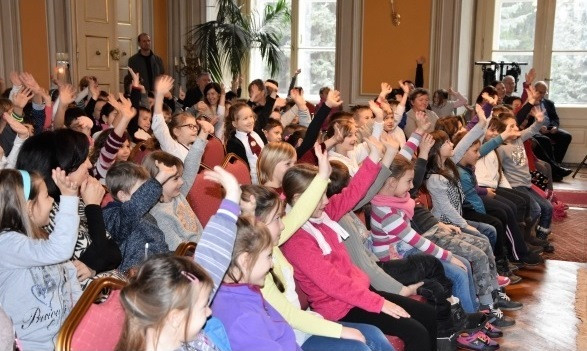 A gyermekeket a váci püspöki palota dísztermében gitáros énekszóval fogadták az EKIF munkatársai. A testület képviseletében Csáki Tibor főigazgató köszöntötte őket, és meggyújtotta az adventi koszorún az első gyertyát.