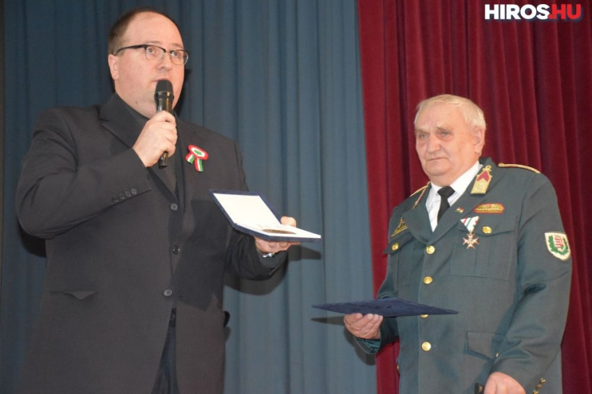 A gimnázium igazgatója az oklevéllel együtt átadta a Kalazancius érmet is Taska Lászlónak, majd a most rehabilitált 56-os nemzetőr szólt a diákokhoz.