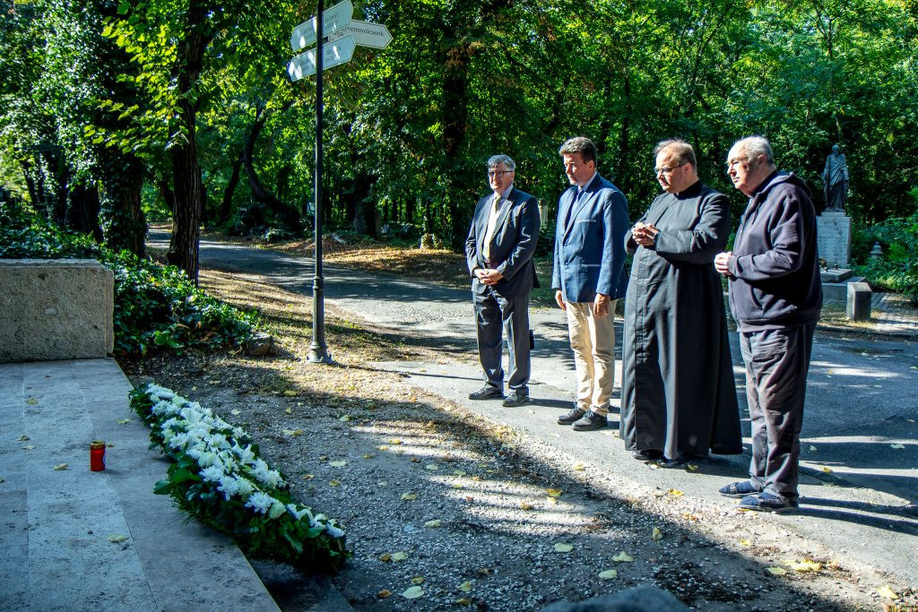 Sírjánál koszorút helyezett el Zsódi Viktor tartományfőnök, Ruppert József piarista szerzetes, Strommer Pál, a Magyar Piarista Diákszövetség elnöke és Móczár Gábor, a Nemzeti Örökség Intézete főigazgatója, piarista öregdiák.