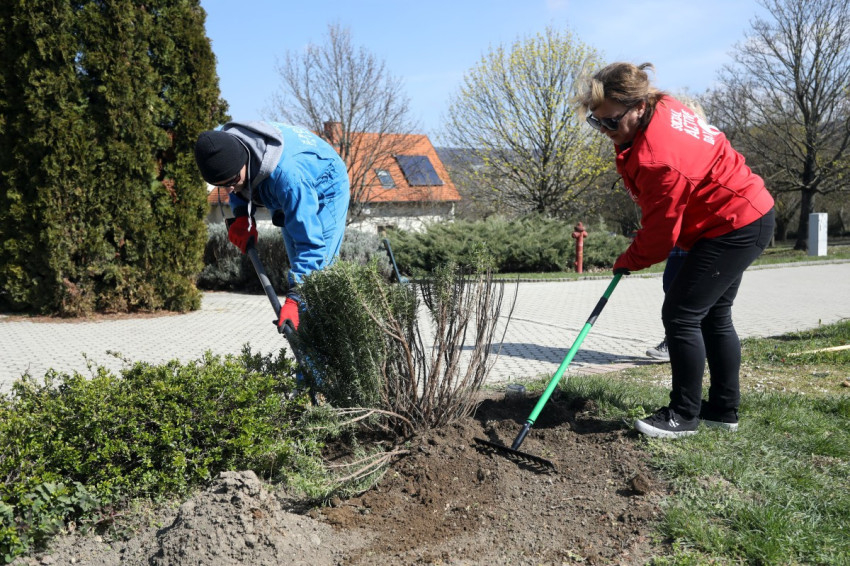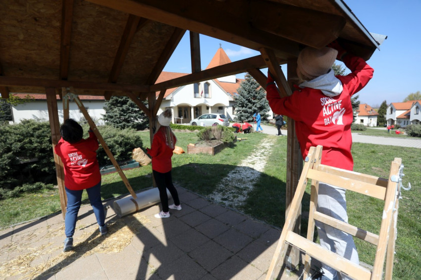 Pátyon, a Máltai Szeretetszolgálat intézmény együttesében idősotthon, fogyatékkal élők lakóotthona, napközi és több műhely is működik, de itt található a nevelőszülői hálózat központja is. A másfél hektárnyi területen bőven akad teendő az év minden időszakában, tavasszal különösen, így nem volt nehéz feladatot találni még hatvan önkéntesnek sem.