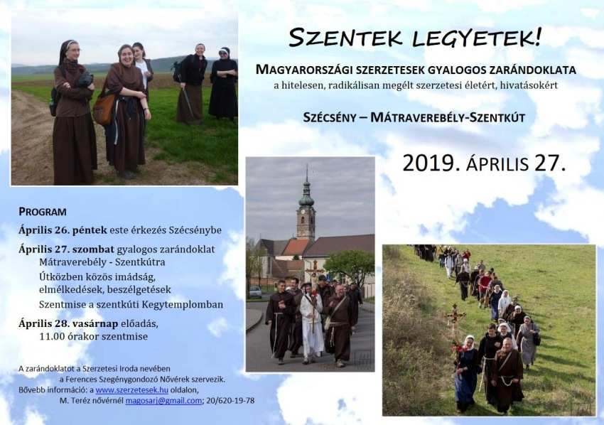 A zarándoklat résztvevőinek másnap, április 28-án, vasárnap 11 órakor Dobszay Benedek ferences provinciális, a Férfi Szerzeteselöljárók Konferenciájának elnöke celebrál szentmisét.