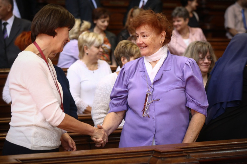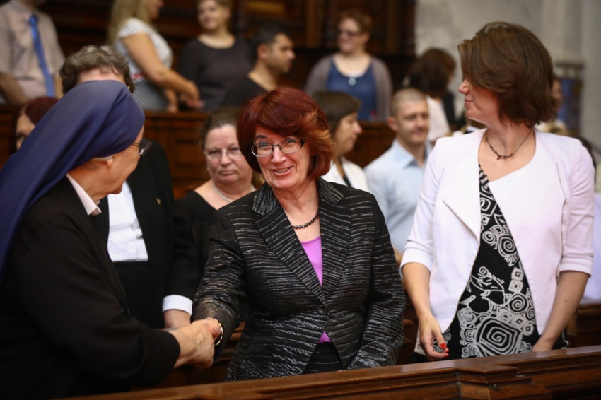 A konferencia második részében Egervári Ágnes, a Római Katolikus Szeretetszolgálat főigazgatója a szeretetszolgálat munkájának lelki hátterét Anthony de Mello jezsuita pap történetével érzékeltette: amikor de Mello kőfaragókkal találkozott, megkérdezte tőlük, miért végzik ezt a nehéz munkát. A válaszok különbözőek voltak. Az egyik munkás azért, hogy fel ne kopjon az álla, a másiknak el kellett tartani a családját, a harmadik pedig ezt válaszolta: „Én építem a katedrálist”.