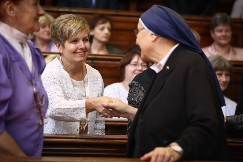 Egervári Ágnes a jubileum alkalmából felidézte azoknak az alakját, akik a szeretetszolgálat kezdeteitől fogva példamutatóan művelték a szolgáló szeretetet: „építették a katedrálist”. A megalakuláskor, 1950-ben a feloszlatott rendek tízezer szerzeteséből kétezerről kellett gondoskodni. A szeretetszolgálat főigazgatója képeket vetített az első otthonokról, majd az újonnan csatakozott intézményekről. Ma tizenkét intézményt tartanak fenn, közel hétszáz dolgozóval.