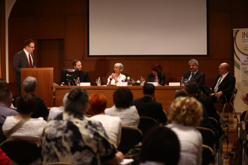 Ezt követően a főigazgató bemutatta legjelentősebb programjukat, az interprofesszionális demencia alapprogramot (INDA). Elmondta, hogy dabasi otthonukban már a kilencvenes évektől kezdve gondoskodnak szellemi hanyatlástól szenvedő idősekkel. A demenciával élők számának növekedésével ez egyre fontosabb feladat, világszerte 47 millió beteg van, és számuk évente 8 millióval nő. Ezért választották a demencia témáját, amikor idén tavasszal lehetőség nyílt számukra egy TÁMOP-projekt megvalósítására. Céljuk a szociális ellátás minőségének és hatékonyságának növelése. A projekt négy pillére a képzés, a kutatás, a kampány és módszertani központok létrehozása.