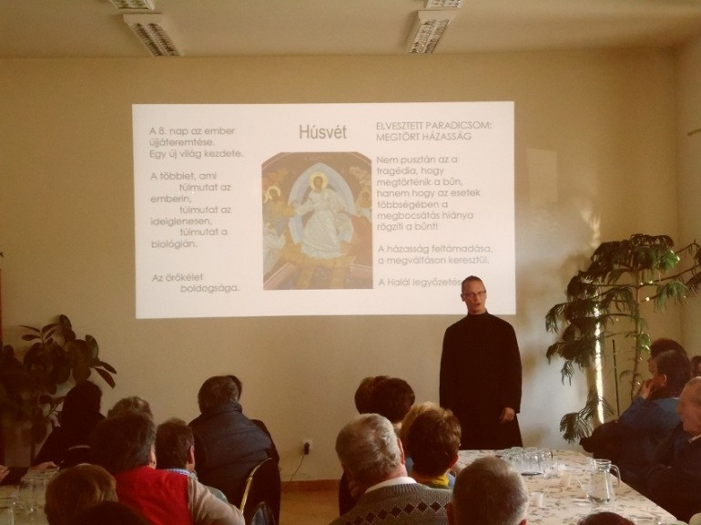 A találkozó a templomban, imaórával kezdődött, majd Szabó Tamás Örökkön örökké! Házasságunk küldetése a társadalomban és az egyházban címmel tartott előadást.