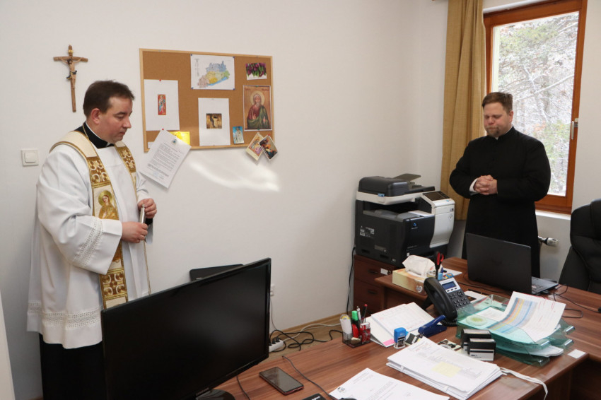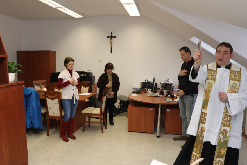 A házszentelés nem egy népszokás, hanem vallásos hitünkből fakadó imádságos kérés. „Az Ige testté lett, és köztünk lakott, és mi láttuk az ő dicsőségét…” (Jn 1,1–18) A megtestesülés titka a legszebb titok. Isten emberré lett, hogy minket gyermekeivé fogadjon. Isten emberi testet öltött magára, ezáltal érinthetővé lett a számunkra, testközelbe került velünk, emberekkel, ezzel is bizonyítva létezését és irántunk való szeretetét – fogalmazta meg a szertartás lényegét munkatársai számára az irodaigazgató.
