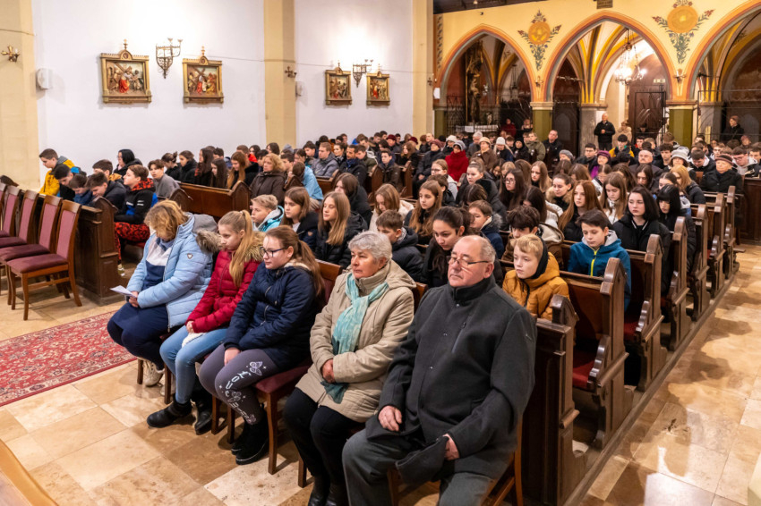 A keszthelyi Ranolder János Római Katolikus Általános Iskola tanulói, pedagógusai és dolgozói ünnepélyes szentmisén vettek részt a Magyarok Nagyasszonya Plébániatemplomban, amelyet Földi István lelkiigazgató, címzetes esperes, plébános celebrált. „Ó, szép Jézus! Ez új esztendőben légy híveidben. Ó Mária! Esedezzél értünk, Édes reményünk! Hogy ez új esztendőben, minden ügyeinkben lehessünk Jézus drága kedvében.” – hangzott el a közös ének.