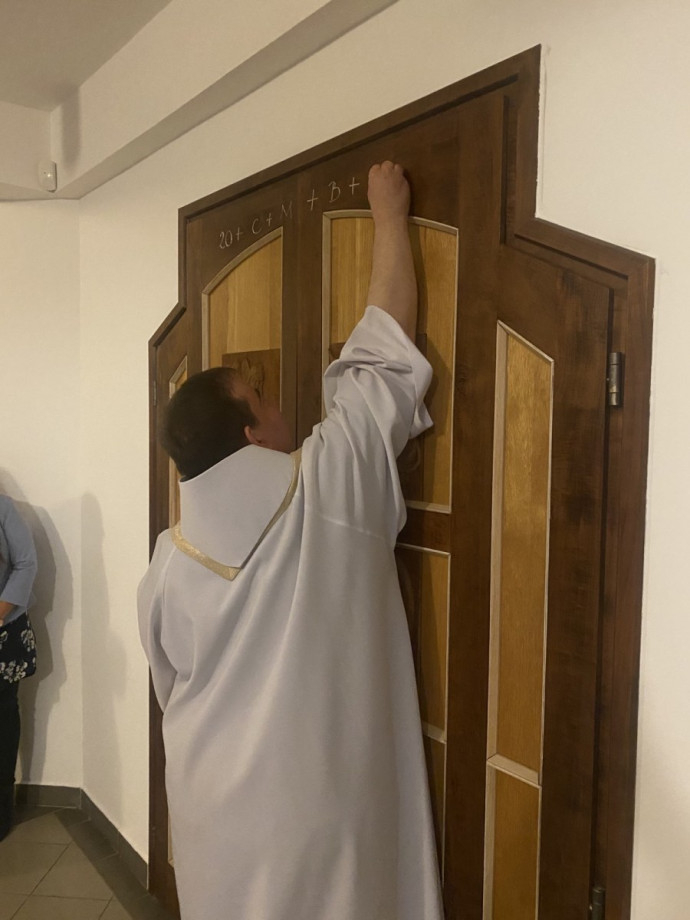 Ezt követően a főpásztor, valamint Takáts István és Tornavölgyi Krisztián atya végigjárva a püspöki hivatalt megáldották a helyiségeket és az ott dolgozókat. Az ajtókra pedig felírták: 20 + C + M + B + 24 – Christus Mansionem Benedicat, azaz Krisztus áldja meg e házat!