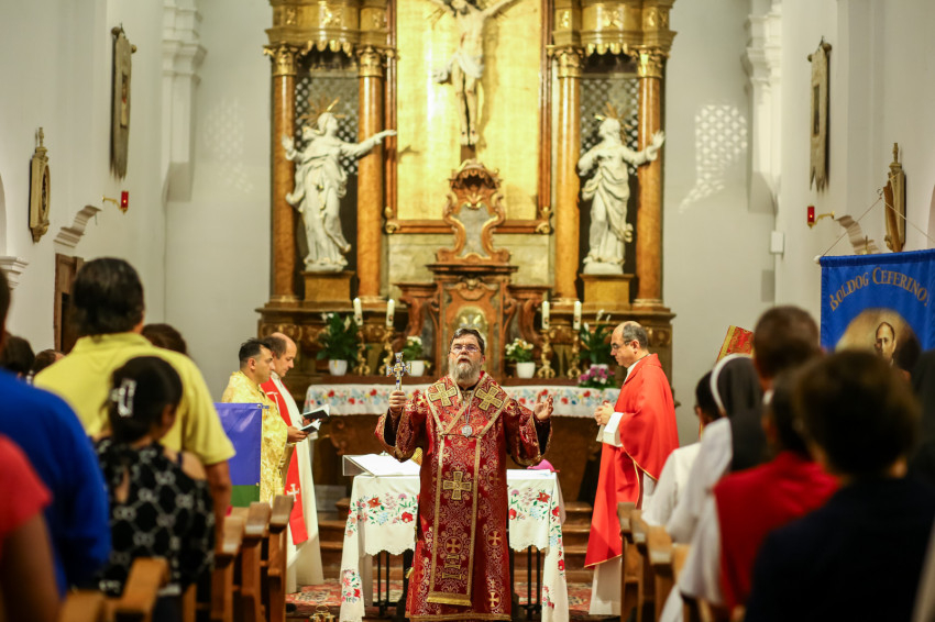 A Szent Liturgiát követően Lakatos Péter megköszöntötte a pappá szentelése 38. évfordulóját ünneplő Orosz Atanázt.