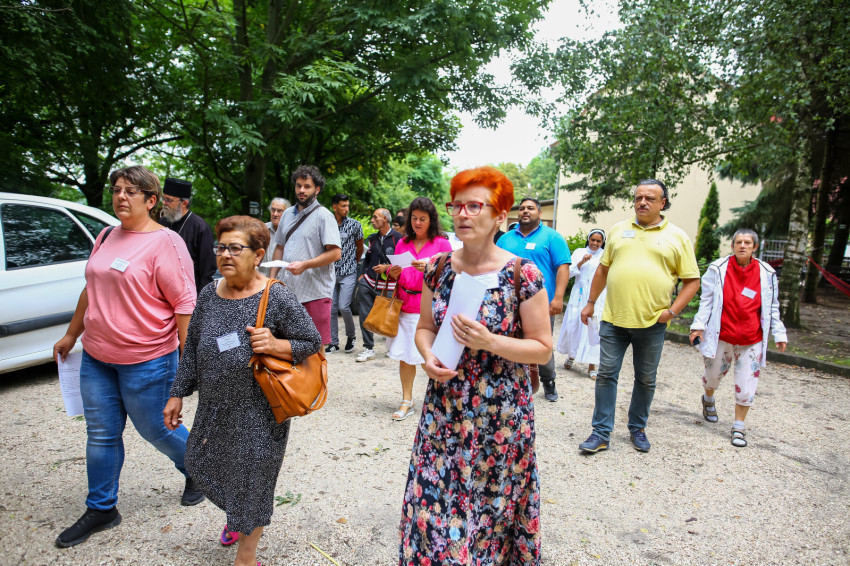 Élénk beszélgetés folyik a péliföldszentkereszti szalézi lelkigyakorlatos központ udvarán. Kisebb-nagyobb csoportokban folytatódik a most befejeződött csoportbeszélgetések témája. Hogyan élsz, hogyan van életedben jelen a hit, melyek a nehézségeid a munkádban, hol értél el eredményeket – osztják meg egymással a cigánypasztorációs lelkigyakorlat résztvevői, a pasztoráció munkatársai, önkéntesei és csoportjaik tagjai.