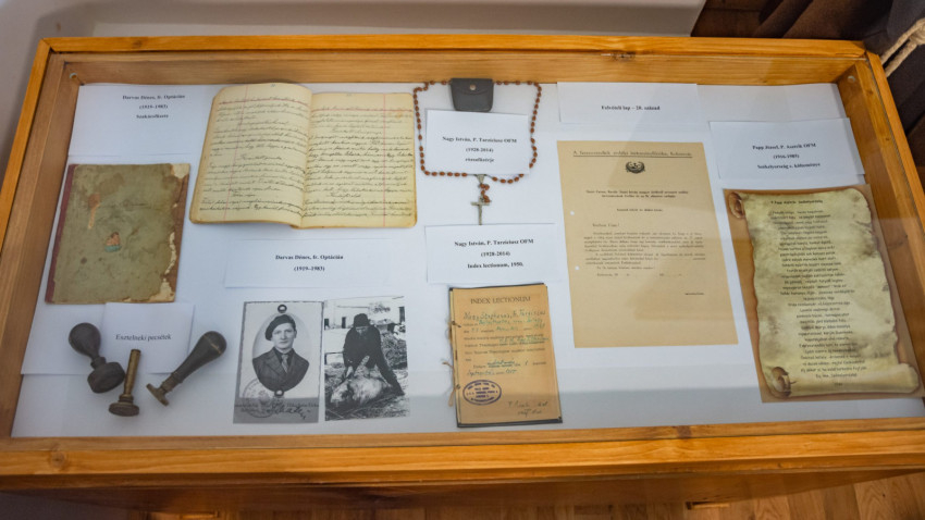 Az egykori kápolna, sekrestye körüli helyiségbe érkezve ferences nosztalgiát teremtő térbe léphetünk be. Ki ne emlékezne Darvas Optácian testvérre, Keresztes Albin atyára, Balázs Abára, Sándor Valerianra, az egykori nagy népmissziós Lukács Mansvet atyára? Nagy Tarzi traktoros barátról is megemlékezünk a tárlaton a fényképek és tárgyi emlékek bemutatásával – részletezte az Erdélyi Ferences Rendtartomány Gyűjtőlevéltárának munkatársa.