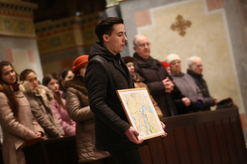 A felajánlási körmenetben az egyetemista résztvevők szimbolikus jelentésű tárgyakat vittek az oltárhoz: a Szentírást, egy hajót, egy térképet, a nyáron megrendezendő krakkói ifjúsági világtalálkozó zászlóját. Az egyetemes könyörgések is ezekhez a tárgyakhoz kapcsolódtak.