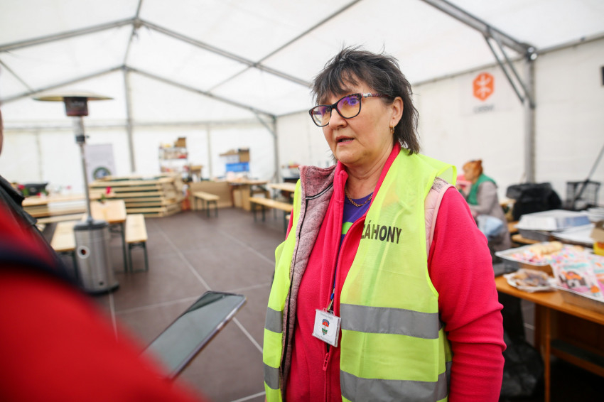 Orsi, aki az önkormányzat alkalmazottjaként dolgozik, gyakran önkénteskedett már a szabadidejében. Éjfél és hajnali hat óra között most is teljesített már egy műszakot a kollégiumban, ezután kezdődik majd a napi rendes munkája. A középiskolai kollégiumban nemcsak a menekülteket szolgálják ki, sokszor pakolnak is, akár hajnali egykor is, ha éppen akkor jön meg egy szállítmány. – Mindenki, aki záhonyi, igyekszik segíteni, ahogy tud. Van, aki szervezéssel, mások kétkezi munkával, megint mások tolmácsolással – mondja. Ági, a sátorfelelős hozzáteszi, összességében naponta kétszáz záhonyi segít folyamatosan a különböző helyeken. Az állomás és a középiskola mellett fontos helyszínek a raktárak is, ahol megállás nélkül szortírozzák az Ukrajnába szánt adományokat, amelyek gyakorlatilag egész Európából érkeznek, sőt olykor messzebbről is.