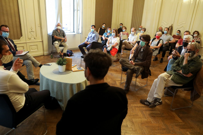 A könyvbemutatón a szerzővel és a kötet két mentorával, Földváry Miklós Istvánnal, az ELTE BTK Vallástudományi Tanszék vezetőjével, illetve Vukoszávlyev Zoránnal, a BME Építészmérnöki Kar (ÉSZK) Építészettörténeti és Műemléki Tanszékének egyetemi docensével Kiss Bertalan, a Juventutem Magyarország közösség vezetője beszélgetett.