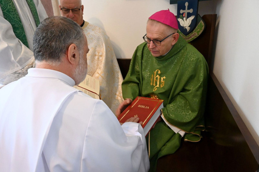 „A ti vállalásotok azzal, hogy átveszitek a Szentírást a kezetekbe, annyit tesz, hogy »alakítsd életed Krisztus keresztjének misztériuma szerint«! Ezekkel a szavakkal ért véget a papszentelés rítusa, de akár nős vagy, akár özvegy, akár pap, eszerint kell alakítani az életedet mondta beszédében Berta Tibor katonai ordinárius. – A kereszténység nem könnyű: állandó küzdelem, harc saját magam gyöngeségei, hibái, bűnei, vétkei ellen, és harc azért, hogy fölfedezzem minduntalan az Atyának, az Istennek arcát. Ez csak úgy lehetséges, ha Jézus Krisztussal napi, óráról órára, percről percre való kapcsolatom van. S ez benne az elképesztően nehéz. Az, hogy ha kimegyünk innen a kápolnából, utána én azt a Krisztust próbáljam elvinni mindenkihez, megmutatni mindenkinek, aki valójában ott van az én szívemben. Azt kívánom nektek, hogy a lektori szolgálatotokban mindig azt tartsátok a szemetek előtt, azt véssétek a szívetekbe, hogy az a könyv, amit kezetekbe kaptok, az az isteni kinyilatkoztatás szava, az Isten igéje. Ott van benne Jézus Krisztus, és nektek Őt kell megjeleníteni, először lelketekben, szívetekben, az értelmetekben, akaratotokban, s ha Ő ott megjelenik, akkor látni, érezni és tapasztalni fogják rajtatok, hogy Istennek sajátságosan lefoglalt emberei vagytok” – zárta homíliáját a katonai ordinárius.