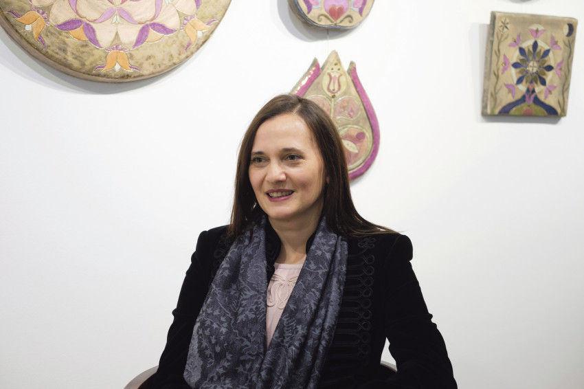 – Kezdetektől fogva az ősmagyar motívumok és azok jelentése, üzenete, ereje érdekel. Ahogyan egyre jobban elmélyedek bennük, világossá válik számomra, hogy milyen keveset tudunk róluk, és milyen gazdag ez a jelképrendszer. Régen, ha például megvarrtak egy szűrt, a készítőjének meg kellett ismernie a megrendelő életét, családfáját, mert az életét is belevarrták. Ebben az értelmezésben az életfa a családunkat, őseinket, gyökereinket jelenti. Az életfamotívum a fizikai és a spirituális világ kapcsolatát, az újjászületést, a növekedést és az erőt is jelképezi. Ez csodálatos dolog. A régiek mindenre odafigyeltek, hogy mikor mit vegyenek fel, mivel díszítsék az otthonaikat. Szinte minden tárgyukat ékesítette valamilyen motívum, ami a termékenységet, a védelmet vagy az erőt jelképezte. A munkáimmal kapcsolatban sokszor kapok visszajelzéseket, hogy üzenetet hordoznak, reményt adnak, nyugtatják a lelket. A tulipán a termékenység jelképe, Szűz Mária virágának is tartják. A nap a keresztény szimbolikában maga Jézus Krisztus, de Mária is, a napba öltözött asszony, a megtestesülés, a szeplőtelen fogantatás, Mária mennybevételének jelképe. A nap és a hold a férfi- és a női energiák egyensúlyát is jelenti.