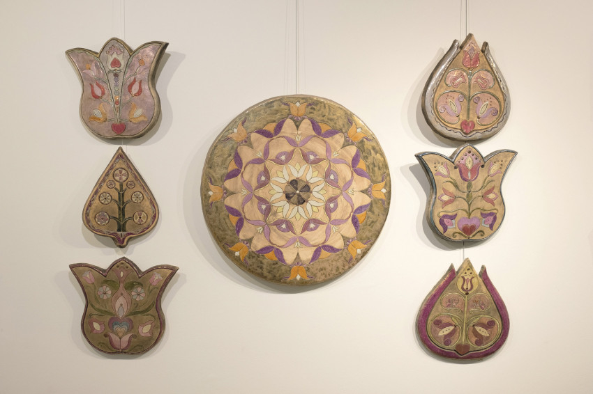 – A magyaros motívumok közül különösen gyakran jelenik meg munkáiban az életfa, a tulipán, a nap. Az utóbbi kettő keresztény jelkép is.