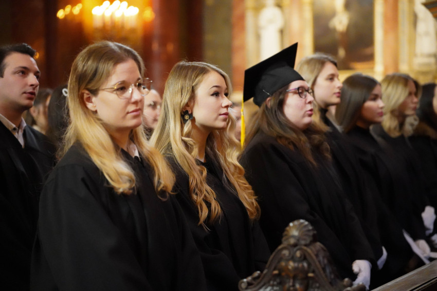 A bazilikában átvett oklevelek így egyszerre jelentették a lezárást és a kezdetet is. Lezárult egy meghatározó életszakasz, amelynek évei alatt a megszerzett tudás most kézzelfogható formát öltött – és kezdetét vette egy másik, amelyben már mindenkinek saját döntései adják meg az irányt. A Pázmány BTK friss diplomásai azonban nem üres kézzel lépnek tovább: magukkal viszik azt a hitet, közösséget és szemléletet is, amely az egyetemen eltöltött években formálódott bennük, és amely a jövő bizonytalanabb pillanataiban is tájékozódási pont maradhat.