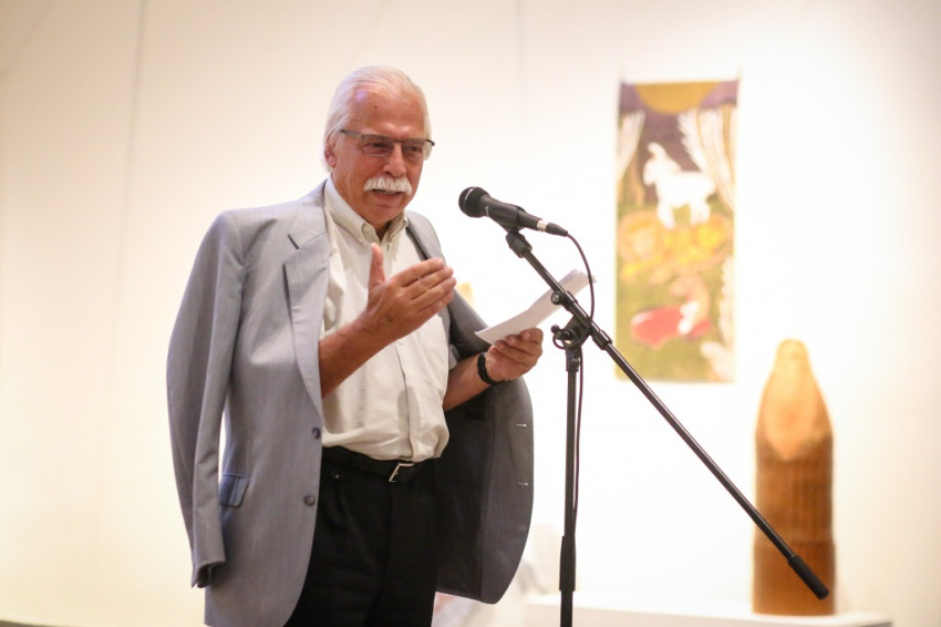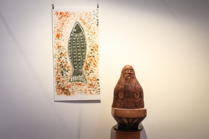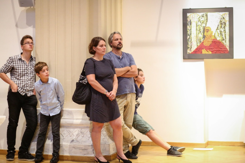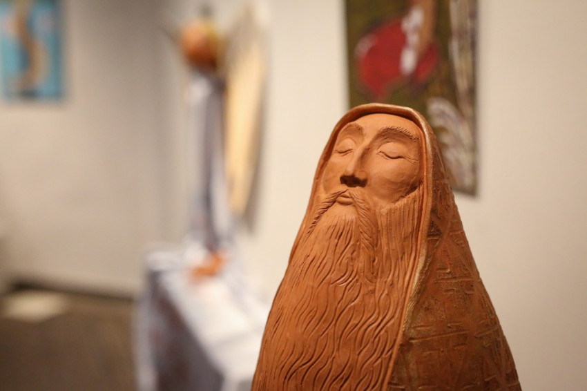 Bevezetőjében Feledy Balázs kiemelt néhány művet a kiállított alkotások közül. Kákonyi Júlia szoborba öntött négy oszlopos szentet: Szent Szerafimot, Szent Szabbaszt, Szent Simeont és Szent Alüpioszt. Az előadó leszögezte: oszlopos szentekről ilyen sűrített szobrászati teljesítménnyel, elmélyültséggel, meditatív alapállással még nem találkozott kortárs művészeti alkotásokban. Különböző oszlopos szentekről van itt szó, akikben közös, hogy olyan elképesztő megszállottsággal, azonosulással, mély érzésvilággal élték a hitüket, amellyel csak nagyon ritkán találkozhatunk az egyháztörténetben, ugyanakkor mind a négy oszlopos szent meditatív bölcselő, filozofikus gondolkodó. Az is érdekes, hogy a négy szent közül három – Szabasz, Szerafim, Alüpiosz – lehunyt szemmel látható, egyedül Simeon tekintete mered valahová a távolba. Ő az, aki a legfantasztikusabb életet élte mind közül, máig ható példa az egész kereszténység számára.