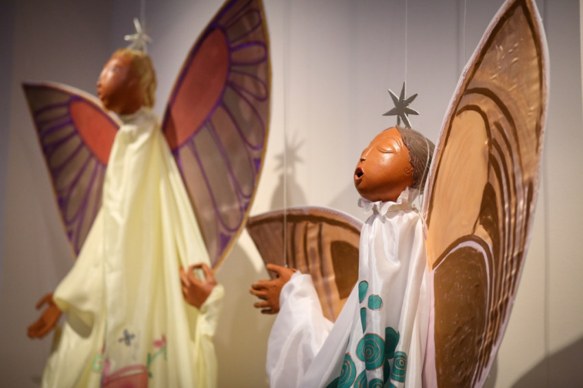 Az előadó emlékeztetett rá, hogy Kákonyi Júlia eredetileg keramikus, a három dimenzió művésze, és ez még az angyalkompozíciókban is megjelenik. Érdekes, hogy a selyem és a batik kétdimenziós; különleges kísérlet, hogy a művész batik- és selyemanyagból plasztikákat hoz létre, amelyeknek egy fény- és felszálló jelenség ad spirituális tartalmat.