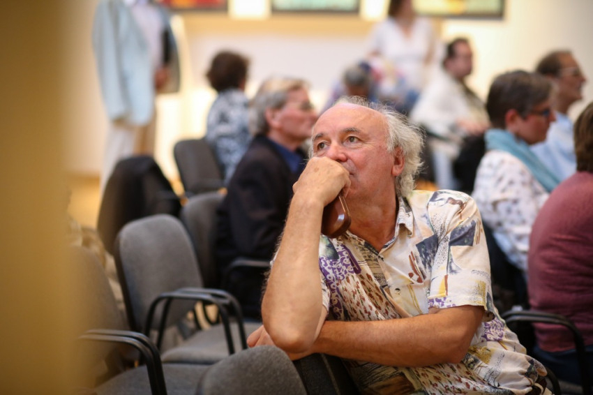 Feledy Balázs külön szólt arról, hogy Kákonyi Júlia több illusztrációt alkotott Sajgó Szabolcs verseihez, így szintézis jött létre irodalom és képzőművészet között. Szabolcs atya verseiben nincsen központozás, se nagybetűk. Ez a technika teljesen rábízza az értelmezést az olvasóra, a verset elmondóra. Ez jelképesen igaz Kákonyi Júlia versillusztrációira is. Az, hogy így egymásra találjon költő és képzőművész, nagyon ritka a mai magyar szellemi életben. Feledy Balázs felolvasta Sajgó Szabolcs Porzó és bibe című versét, amelyhez Kákonyi Júlia virágkompozíciót készített: