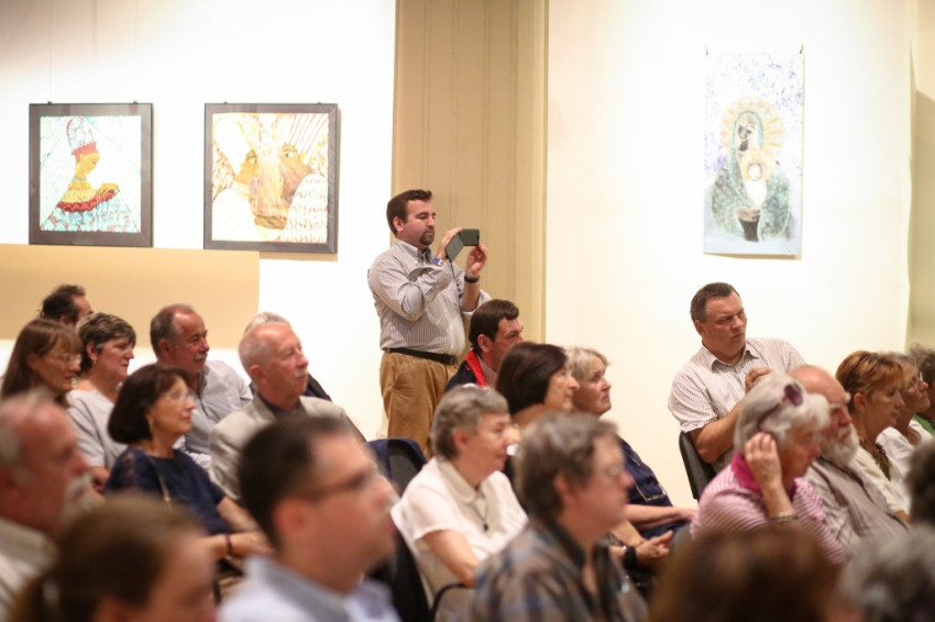 A kiállítást megnyitó művészeti író vallja: valami többlet kell ahhoz, hogy egy alkotó olyan szakrális műveket hozzon létre, amelyben hitelesen jelenik meg az isteni, a szent, a biblikus tartalom. Nem biztos, hogy hívőnek kell lennie a művésznek, mert sajnos sok olyan hívő alkotó van, aki legjobb akaratával sem képes erre. Kákonyi Júlia viszont eszmeiségében, látnoki képességével, érzékletességével, azzal, ahogyan viszonyul a szent értékekhez, és vizualizálja azokat, alkalmas arra, hogy valóban hiteles szakrális műveket hozzon létre, ezt bizonyítja egész életműve, így ez a kiállítás is. Megjelenik ez a tematikában és a rendkívüli technikai gazdagságban is. Látunk kerámiát, batikokat, fantasztikus selyem monotípiákat.