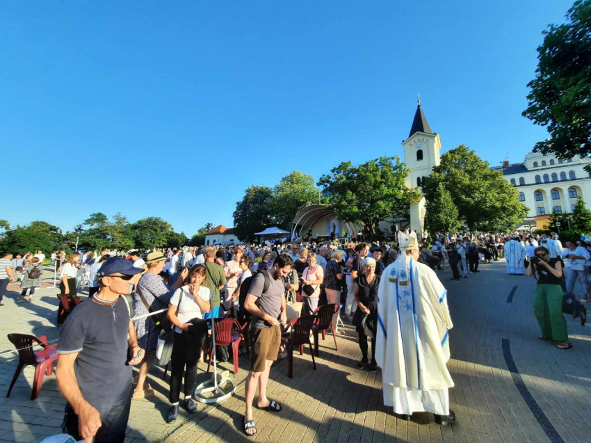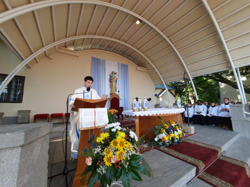 Másnap a vasárnapi magyar szentmisét Hegyi Péter érsekújvári káplán mutatta be. Ő arra kérte a zarándokokat, hogy „mint Szent István királyunk, mi is ajánljuk fel Máriának családjainkat és szívünket, mindazzal az örömmel és fájdalommal, ami csak bennünk lakozik. Engedjük meg, hogy Mária belépjen a mi életünkbe is, és ne engedjük, hogy egyedül térjen vissza Teremtőjéhez, hanem vigyen magával minket is hozzá. Tegyünk érte, hogy rajtunk keresztül másokban is elkezdődjék az Isten országa!” – bátorította az újra szép számban egybegyűlt magyar híveket a káplán.