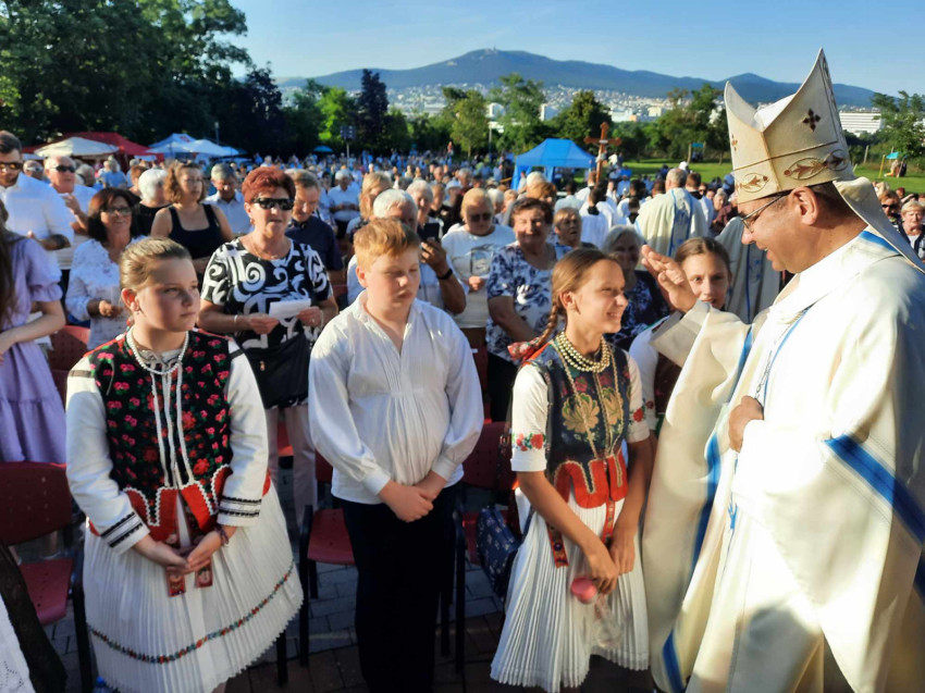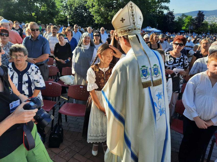 Majd a betegekhez és idősekhez is szólt a főpásztor: „Igent kell mondani Istennek a szenvedések idején is, a keresztek alatt, mint Mária, aki rendíthetetlenül ott állt Jézus keresztje alatt, és nem esett kétségbe. Egy lett az Úr Jézus áldozatával. Ne veszítsd el tehát hited fényét, tudd, hogy éppen a szenvedésben vagy legközelebb Istenhez.”