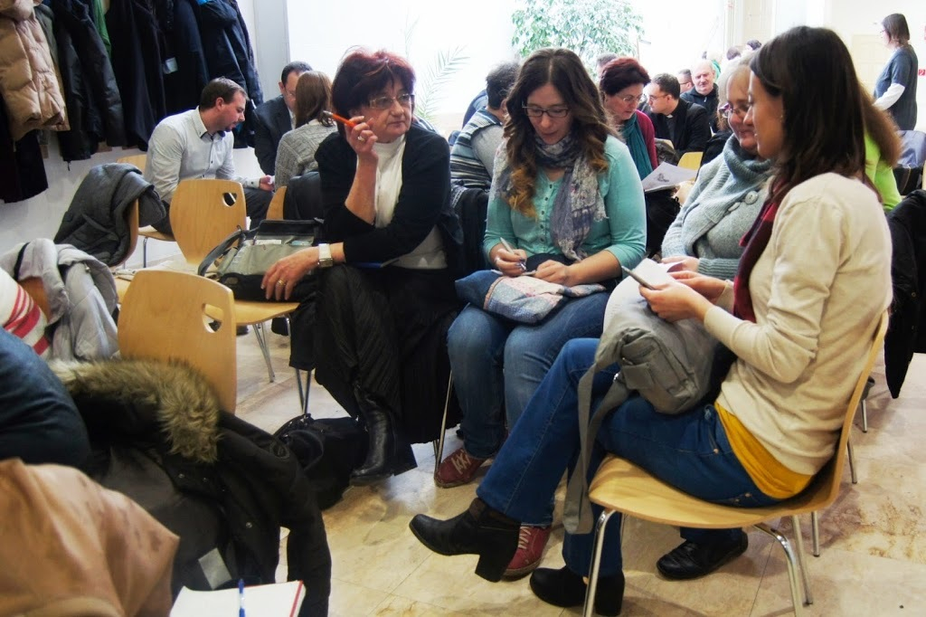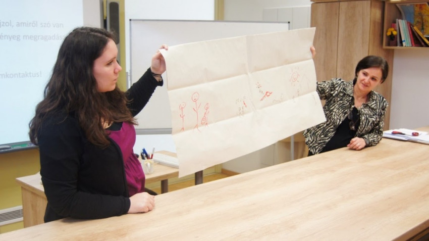 A pedagógus előadó a kézikönyv segítségével bemutatta az „5 pont szemléltető módszert”, amely hangsúlyt fektet a tanítás utáni időszakra is, útravalót és gyakorlatot adva a gyerekeknek óráról órára. A módszer egyszerűen kivitelezhető, ám látványos része az illusztrált magyarázatként szolgáló „élőtábla” eszköze, amely a történetmesélést nemcsak képileg kíséri, hanem kiemeli annak hangsúlyait is. A hitoktatók a képzésen kiscsoportokban elevenítették meg a tékozló fiú történetét. A példabeszéd Tiborczné Somogyi Éva és Antal Tímea pécsi egyházmegyei hitoktatók vezetésével dramatizált formában is életre kelt.