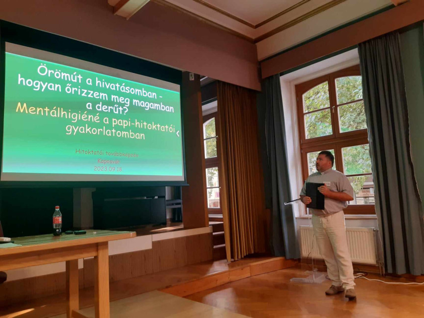 Szeptember 18-án Váron István atya tartott előadást Kaposváron, az Örömút a hivatásomban. Hogyan őrizzem meg önmagamban a derűt? – Mentálihigiéné a hitoktatói gyakorlatomban címmel.