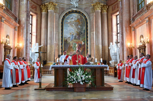 A bevezető után Székely János püspök a jelen lévő atyákkal együtt mutatott be szentmisét, amelyben közösen kérték a Szentlélek segítő kegyelmét a tanévre és a hitoktatói munkára. A megyéspüspök szentbeszédében gyakorlati ötletekkel is ellátta a hittanárokat.
