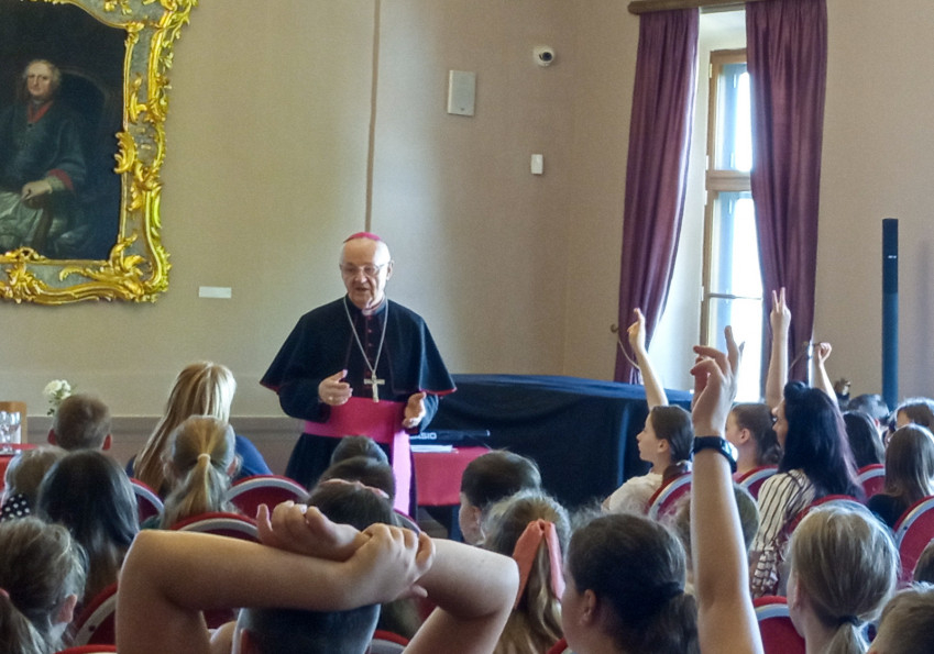 A főpásztorral való találkozóra délután, az érseki palota Erdődy termében került sor. Ternyák Csaba gyerekkoráról és az érseki kinevezést megelőző évekről beszélt. Az igazán izgalmas rész pedig akkor érkezett el, amikor a gyerekek a helyszínen is feltehették a kérdéseiket. Tartalmas, kötetlen párbeszéd alakult ki a főpásztor és a gyerekek között, melynek során sok minden szóba került: „Ki a kedvenc szentje? Szokott-e focizni? Van-e háziállata?” De a közvetlen hangulatú beszélgetés érintett olyan témákat is, mint például: „Előfordult-e valaha, hogy haragudott Istenre?”