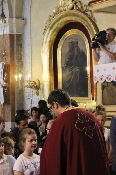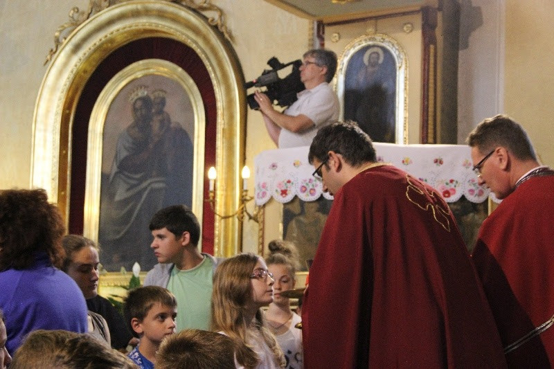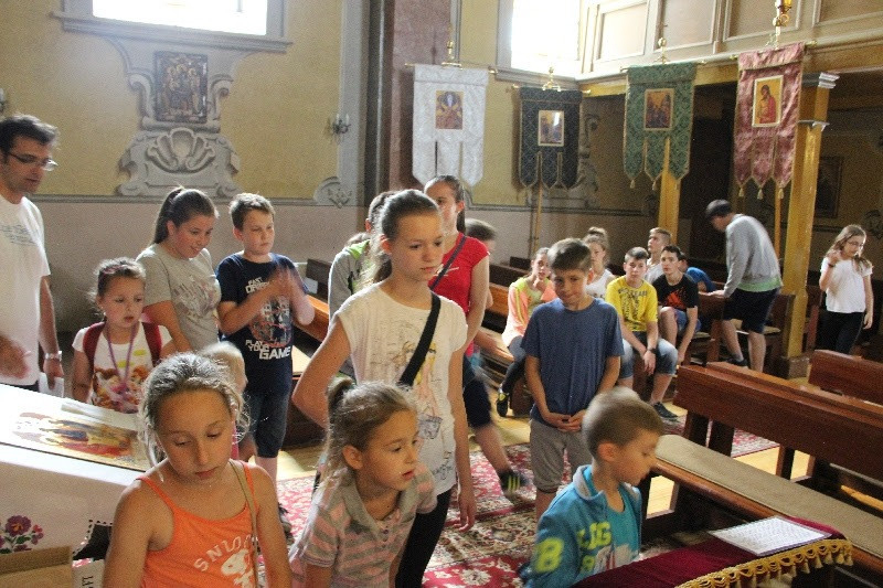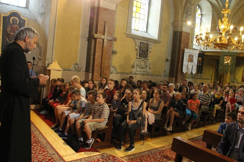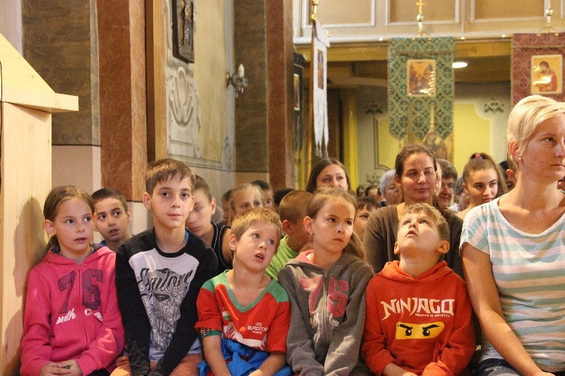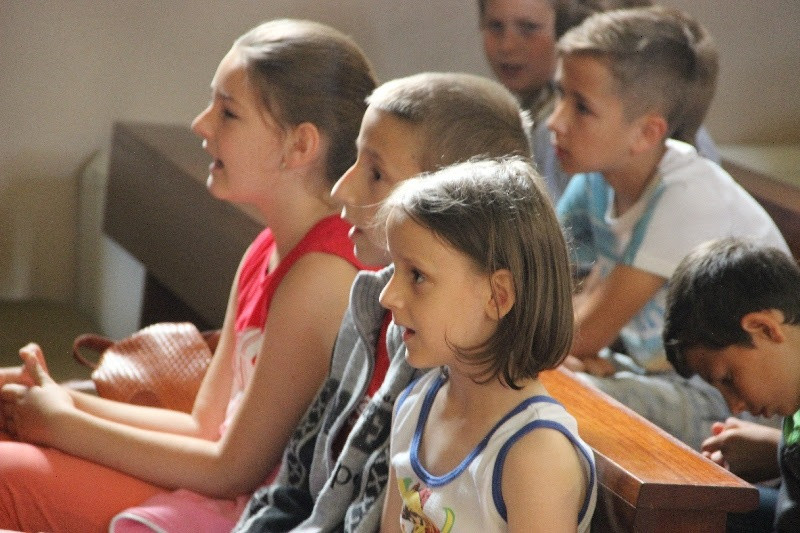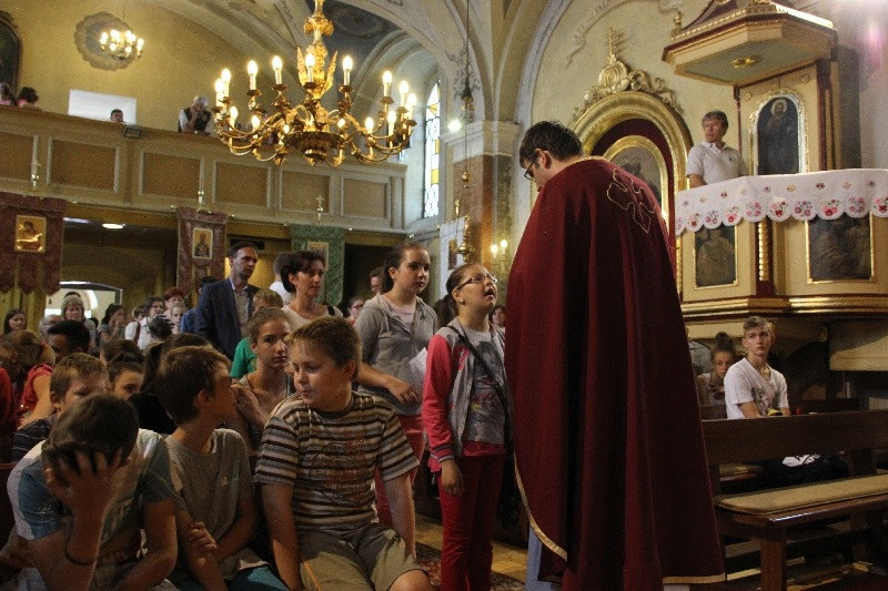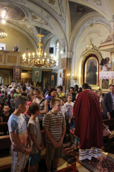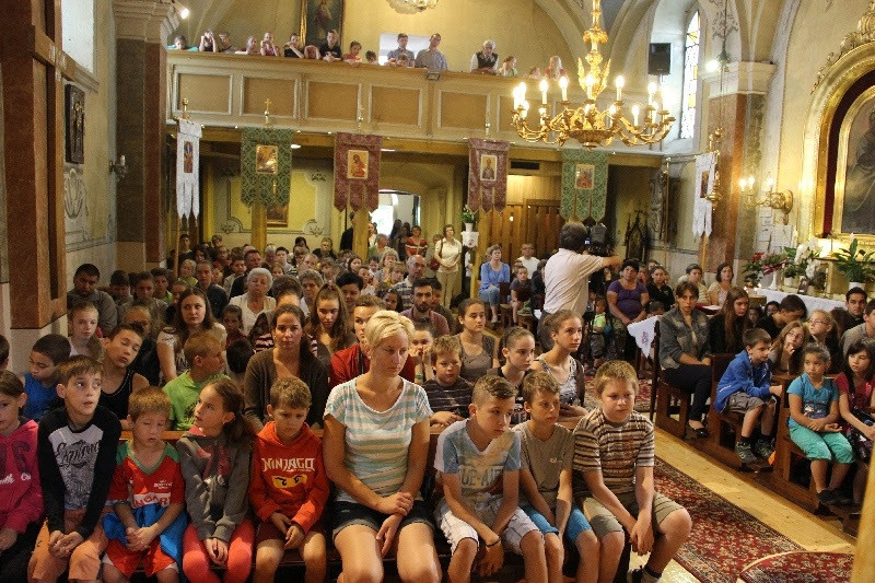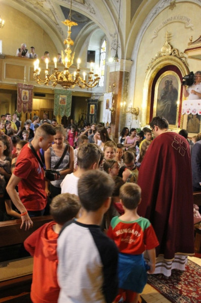 A nap közel 400 gyermek részvételével Szent Liturgiával kezdődött, amelyen részt vett Orosz Atanáz miskolci püspök is. Papp Zoltán homrogdi parókus, a találkozó főszervezője szentbeszédében a jó nyári szünet összetevőire hívta fel a figyelmet: élmény, jókedv, mosoly, nyitott szív, rendszeres ima, templom, barátok. Kiemelte: fontos, hogy a vakáció alatt is hogy óvjuk magunkat a bűntől, a semmittevéstől. A nyári szünetben is legyünk nyitottak minden újra, ami minket épít, gazdagít, fedezzük fel a körülöttünk lévő értékeket, lássuk meg benne a teremtő Isten jóságát. A jókedv, a barátok között megélt percek töltsenek fel, szerezzünk élményeket, de ebből ne hagyjuk ki teremtő Urunkat sem, akitől mindezeket a jókat kaptuk. A nyár legyen a jó Istennel való kapcsolatunk mélyebb megélése, mert most nem kell olyan szorított ütemben kötelességeink után szaladni. Találjuk meg minden napnak az értelmét, ne csak a semmittevéssel teljen el a nyár – fogalmazott a szónok.