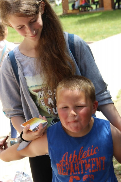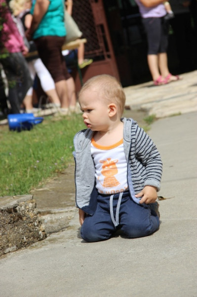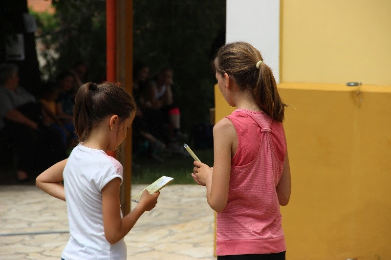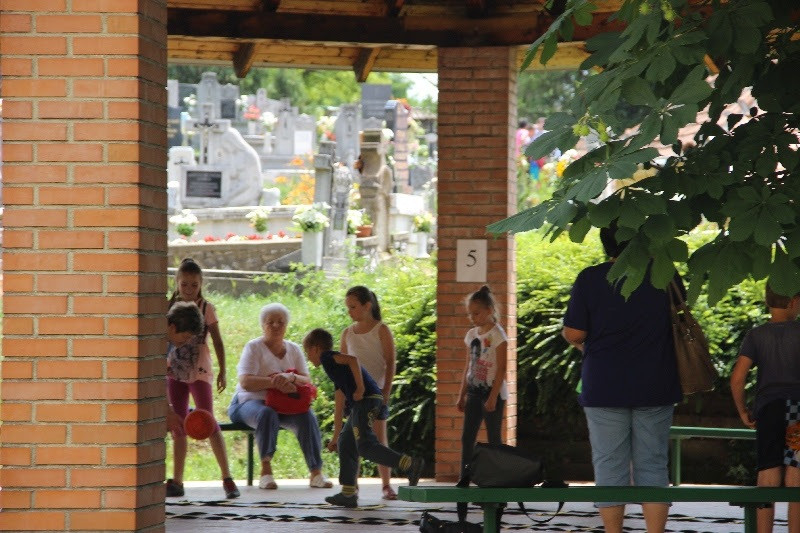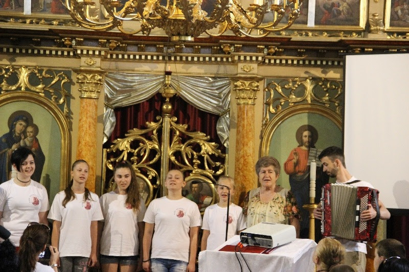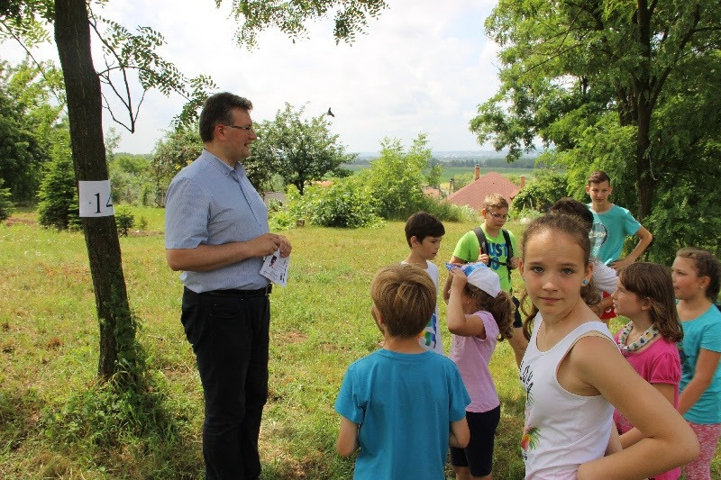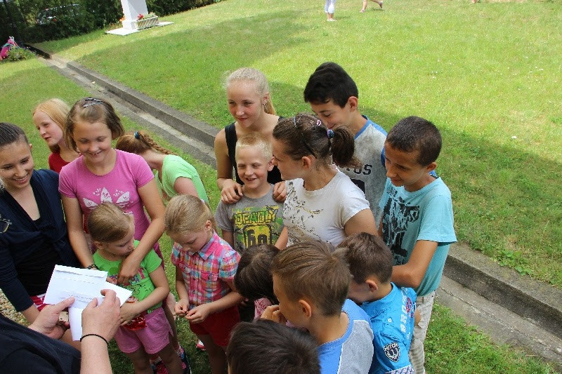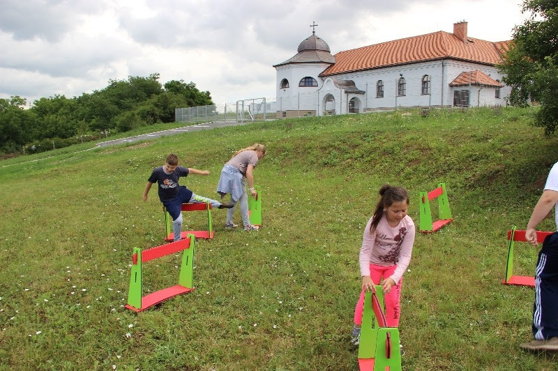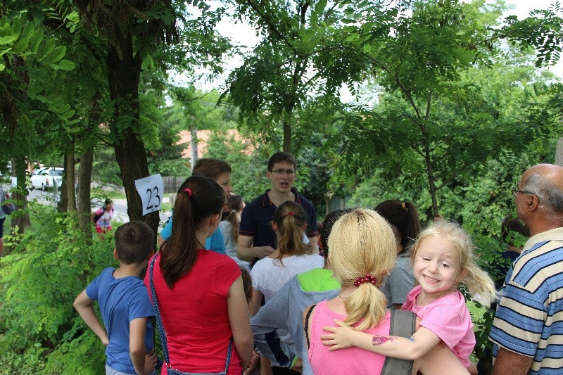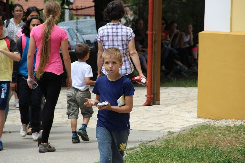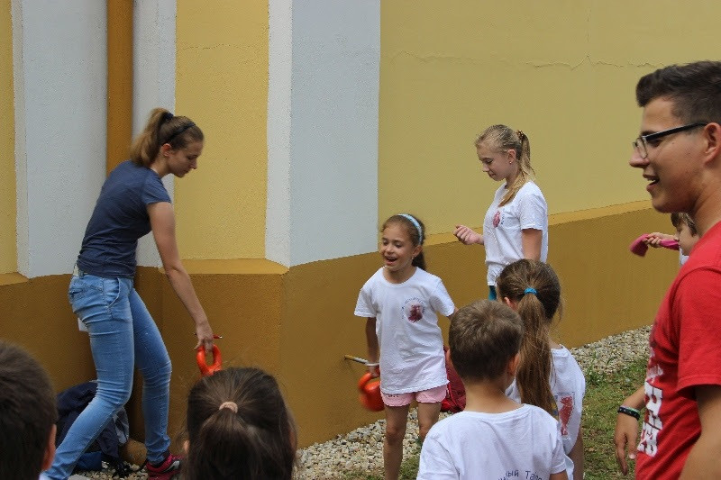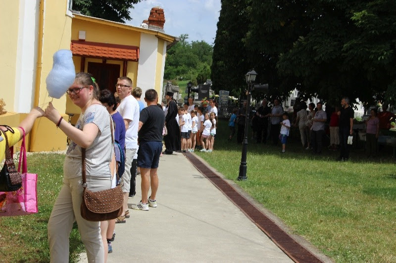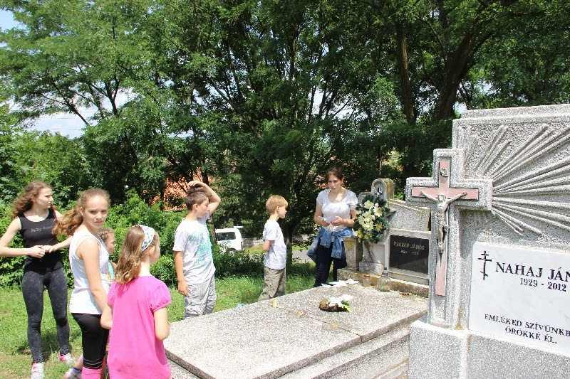 A liturgiát követően a templomban Kovács Lajos irotai parókus vezetésével gitárral kísért énekeket tanultak a gyerekek, eközben a felnőttek előkészültek egy képzeletbeli, 40 mezőből álló társasjátékra. Az adott mezőn minden csapat egy dobókocka segítségével dobott, és így tudott tovább lépni. Az egyes mezők feladatokat rejtettek magukban, amelyek megoldása esetén újabb dobás következett: bibliai kérdések, sportkérdések, ügyességi feladatok. A 40., s egyben utolsó állomás a kegytemplomban volt, ahol a kegykép előtt a csapatok az Üdvözlégy Mária kezdetű imával köszöntötték az Istenszülőt, illetve megkapták ajándékukat, az erre a napra külön készített „hittanos csokit”, amely csomagolásán egyik oldalt a sajópálfalai kegykép található, a másikon pedig a jó nyári szünet összetevői egy rövid imával.