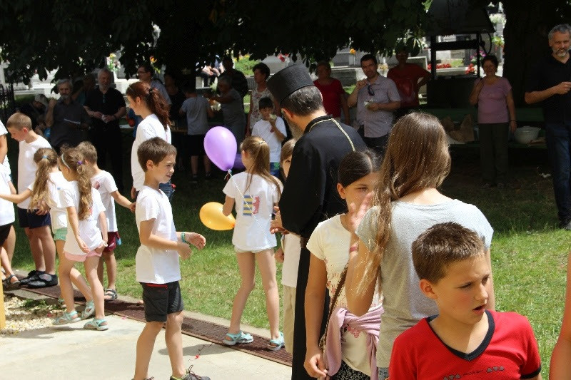 Ebéd után minden gyerek egy lufit engedett fel az elmúlt tanév, egy fohász, a hálaadás szimbólumaként. Zárásként Orosz Atanáz püspök vezetésével közösen parakliszt (az Istenszülőhöz szóló imádság) imádkoztak.