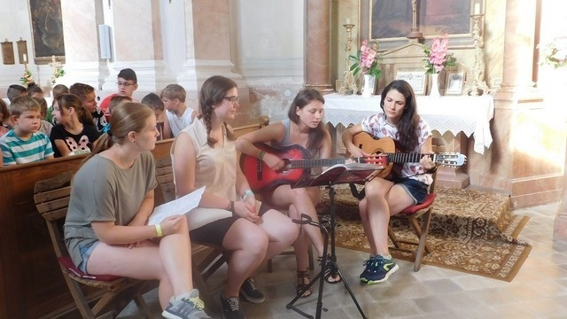 Szentmisével vette kezdetét a rendezvény: újmiséjét tartotta Kaszás Csaba atya, aki az elmúlt években rendszeres résztvevője volt a tábornak. Idén is a hitanosokkal volt Kónya Máté kispap, aki Rómában tölti tanulmányi idejét.