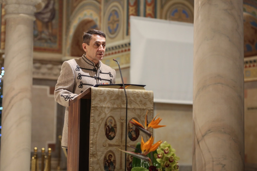 Az evangéliumi történetben Jézus a tömegben tanít. Sokan szeretnének a közelébe jutni, hogy segítségét kérjék. Egy csoport leleményes módot talál: megbontják a tetőt, és kötélen leeresztik a gyógyulást kérő béna társukat. „Amikor nagy baj van, Istentől várjuk a segítséget, és mindenekelőtt összefogásra van szükség” – mutatott rá a szónok. Jézus segít, de nem úgy, ahogy mi várnánk: „bocsánatot nyertek bűneid” – fordul a béna emberhez, mielőtt meggyógyítaná. Látnunk kell, hogy a bajok forrása a bűn, a felemelkedés útja pedig az erkölcsi megújulás – hívta fel a figyelmet a Szentírás üzenetére Kiss-Rigó László püspök. Nekünk is ez az utunk. „Mikor megnyitjuk ezt az emlékévet, Mátyás alakjának, történelmi szerepének felidézése segítsen tudatosítani igazi gyökereinket, megerősödni identitásunkban, hogy szilárd erkölcsi alapokon álló nemzetként tudjunk hozzájárulni Európa megújulásához” – zárta beszédét a főpásztor.