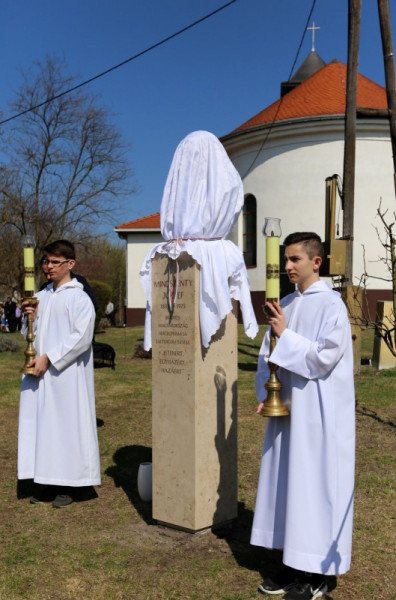 A szentmise után következett a szoboravatás. Lantos Györgyi szobrászművész alkotását a pálosok virágoskertjében állították fel, ahol a rend üldöztetést elszenvedett tagjainak, köztük Vezér György Ferencnek állított korábban emléket.