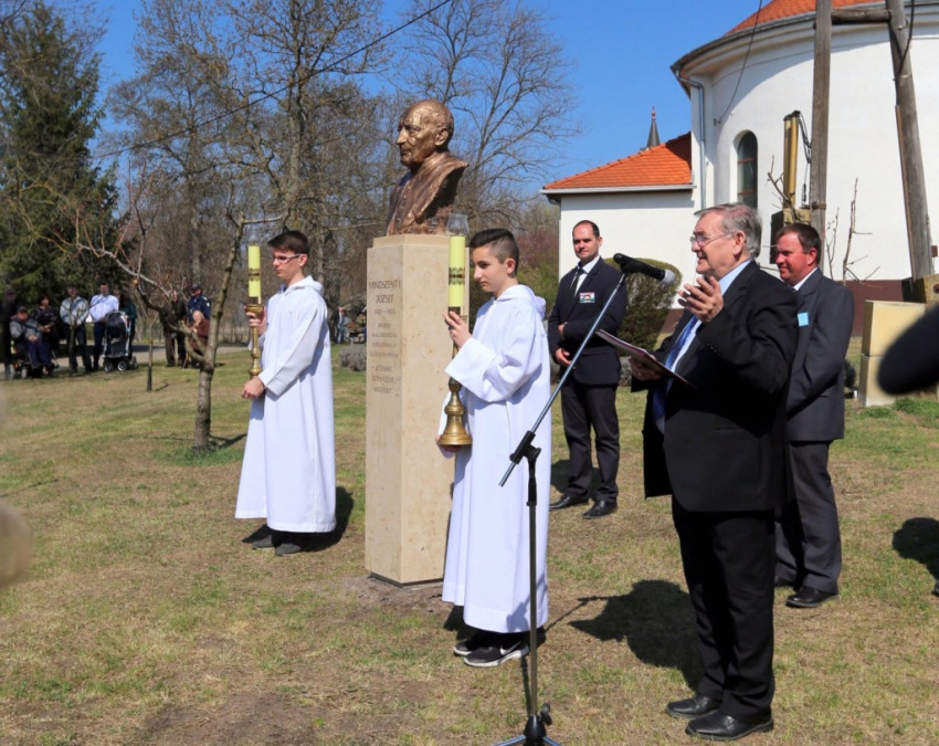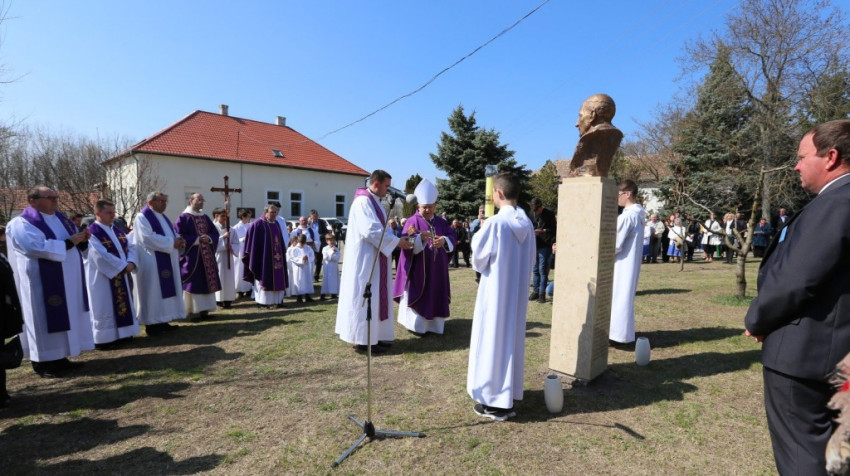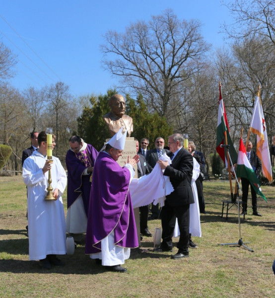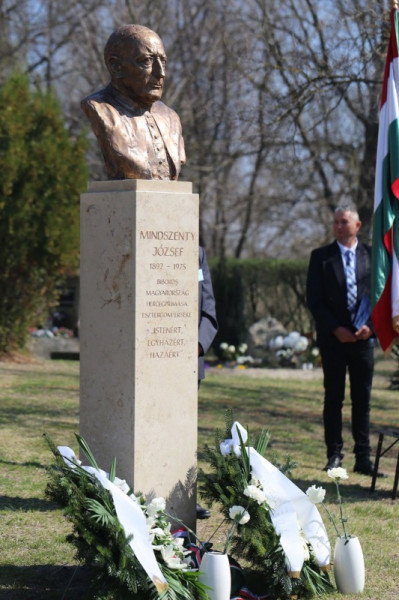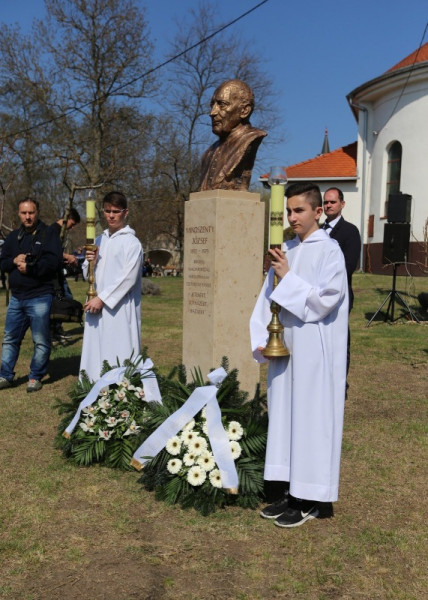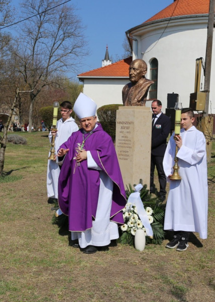Bábel Balázs érsek beszédében a szobor talpazatára írt „jelmondathoz” csatlakozott: Istenért, egyházért, hazáért. Rámutatott: ez a hittel, reménnyel és szeretettel teli kiállás jellemezte Mindszenty József egész életét; ezért imádkozunk boldoggá és szentté avatásáért, amit a szívünkben már így hordozunk.