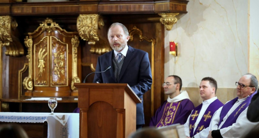 Bábel Balázs szentbeszédét az evangéliumban elhangzó tékozló fiú történetéhez kapcsolta. „Ez a nagy hatástörténetű példabeszéd az ember választását helyezi a középpontba. A jó és rossz közötti választás nekünk is a legnagyobb erkölcsi feladatunk.” Az érsek a választás fontosságát Mindszenty hercegprímás és a Magyar Katolikus Püspöki Konferencia 1945-ben írt körlevelének gondolataival támasztotta alá.