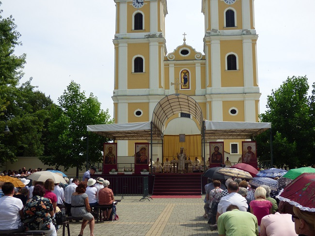 Az ünnepi Szent Liturgiát a kegytemplom előtti téren tartották, mindenekelőtt a Miskolci Egyházmegye papságának aktív részvételével.
