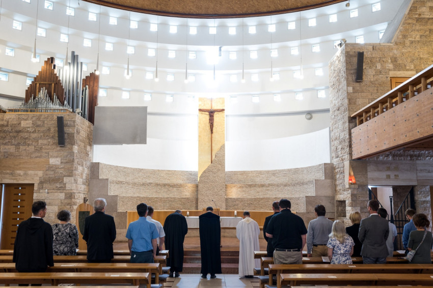 A következő nap reggelén a három felekezet egyetemi lelkészének szolgálatával tartott ökumenikus áhítaton lehettek közösségben a püspöki hivatalok munkatársai a Magyar szentek templomában.
