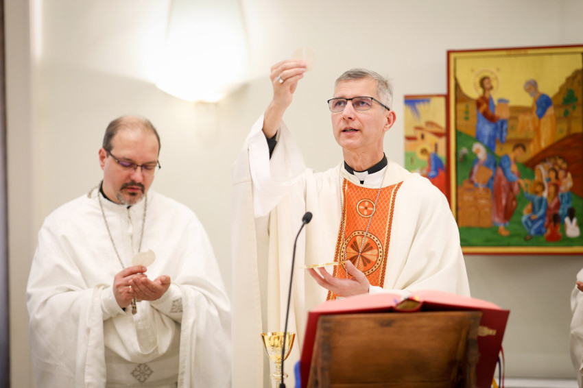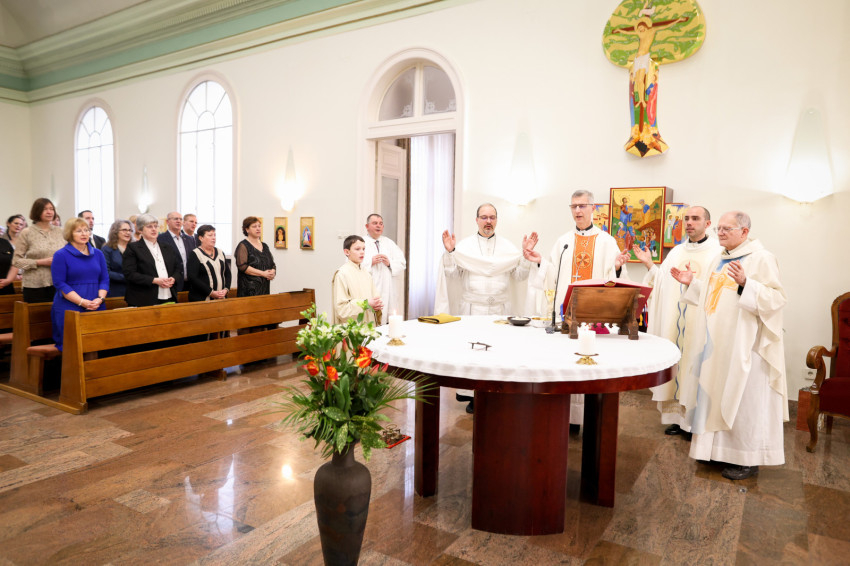 Szentmisével kezdődött a jubileum ünneplése. Az alkalomra egybenyitották a kápolnát és az iskolaközpont dísztermét.